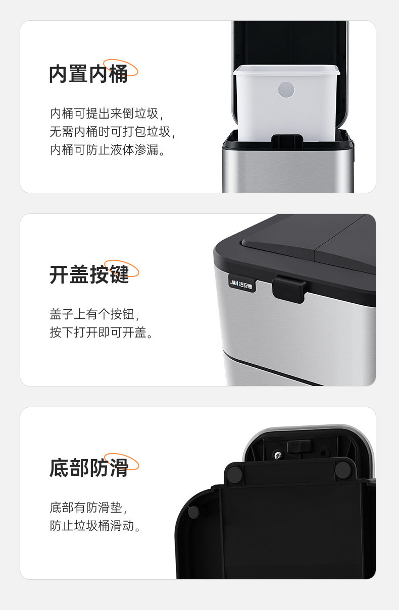 公司創(chuàng)立“潔安惠”品牌(英文“JAH”),正式進(jìn)軍品牌市場(chǎng),以智能感應(yīng)垃圾桶這一產(chǎn)品為主要載體,將家居生活同智能化完美結(jié)合。經(jīng)過(guò)潔安惠人鍥而不舍的努力,公司高端垃圾桶產(chǎn)品線不斷擴(kuò)展與延伸,目前已發(fā)展成為國(guó)內(nèi)知名的高端和智能垃圾桶生產(chǎn)商及品牌商。