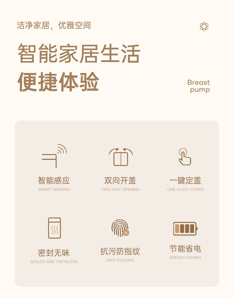 公司創(chuàng)立“潔安惠”品牌(英文“JAH”),正式進(jìn)軍品牌市場(chǎng),以智能感應(yīng)垃圾桶這一產(chǎn)品為主要載體,將家居生活同智能化完美結(jié)合。經(jīng)過(guò)潔安惠人鍥而不舍的努力,公司高端垃圾桶產(chǎn)品線不斷擴(kuò)展與延伸,目前已發(fā)展成為國(guó)內(nèi)知名的高端和智能垃圾桶生產(chǎn)商及品牌商。